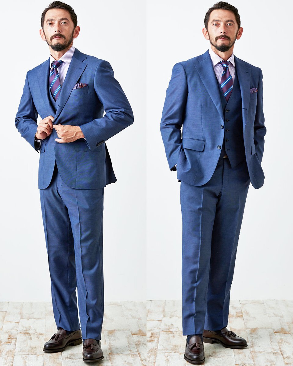 例えば、シングルからダブルに変更したり、ベストを追加することで見た目の印象を大きく変えることができます。